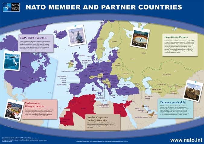 The North Atlantic Treaty Organization is an intergovernmental military alliance between several North American and European countries. It comprises of 29 independent member countries across North America and Europe. The combined military spending of all NATO members constitutes over 70% of the global total. It was created to counter the threat posed by Soviet Union during the Cold War. The United States is generally considered the de-facto leader of the group.