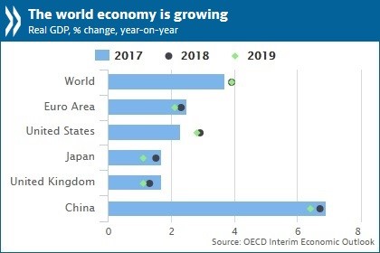 The Organization for Economic Co-operation and Development (OECD) upgraded its global growth forecasts for 2018 as well as for next year, while also raising concerns over the risk presented by increasing trade protectionism.