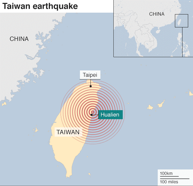 On February 6th 2018, the island of Taiwan was hit by a powerful 6.4-magnitude tremor about 20km off the island’s east coast. Hualien, a popular tourist hub, is home to about 350,000 people. At least six people have died and 256 have been injured. Around 145 people have been declared missing. In addition, at least 40 people are currently trapped inside a building that is precariously tipping to the side and on the verge of collapsing. There are many more trapped in other venues including 17 who are in a B&B in the area.