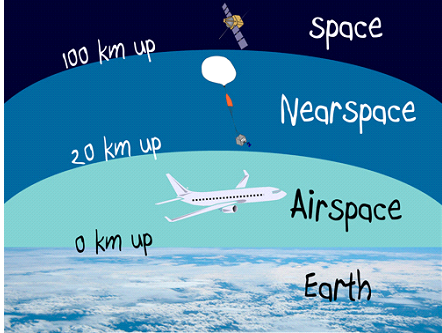 Near space is the region of Earth’s atmosphere that lies between 20 and 100 km (65,000 and 328,000 feet) above sea level. It encompasses of the stratosphere, mesosphere and the lower thermosphere. The parameters of what constitutes as near space has varied even among researchers and scientists. However, is it generally accepted that near space comprises of altitude higher than where commercial airlines from but is below orbiting satellites.