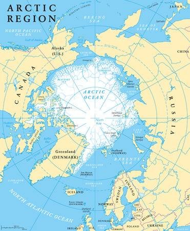 The Arctic Circle is a polar region located at the northernmost part of Earth. It consists of the Arctic Ocean, adjacent seas, and parts of Alaska (United States), Northern Canada (Canada), Finland, Greenland (Kingdom of Denmark), Iceland, Norway, Russia and Sweden.